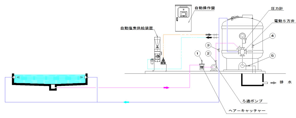| 操作は簡単でボタンを押すだけ!後は装置が自動で水の補給を開始し、満水になれば循環を始めます。 ※水質により設計致します。特殊仕様についてはご相談下さい。 |